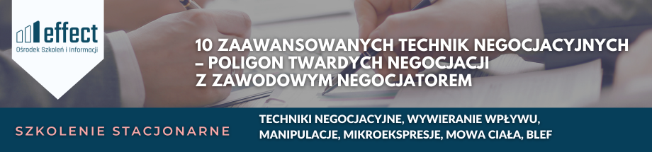 Ważnym elementem szkolenia 10 zaawansowanych technik negocjacyjnych jest również moduł dotyczący mowy ciała w negocjacjach wywierania wpływu, manipulacji i mikroekspresji.