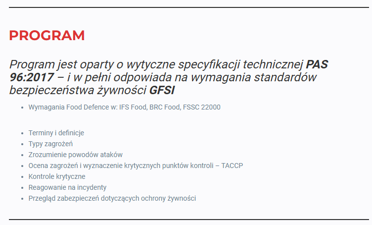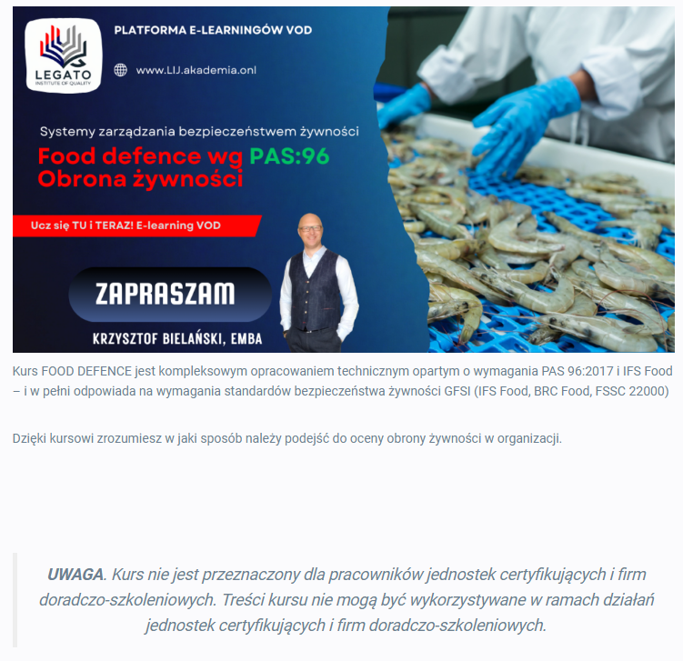 Kultura Bezpieczeństwa Żywności + Food defence (PAKIET e-learningów VOD)