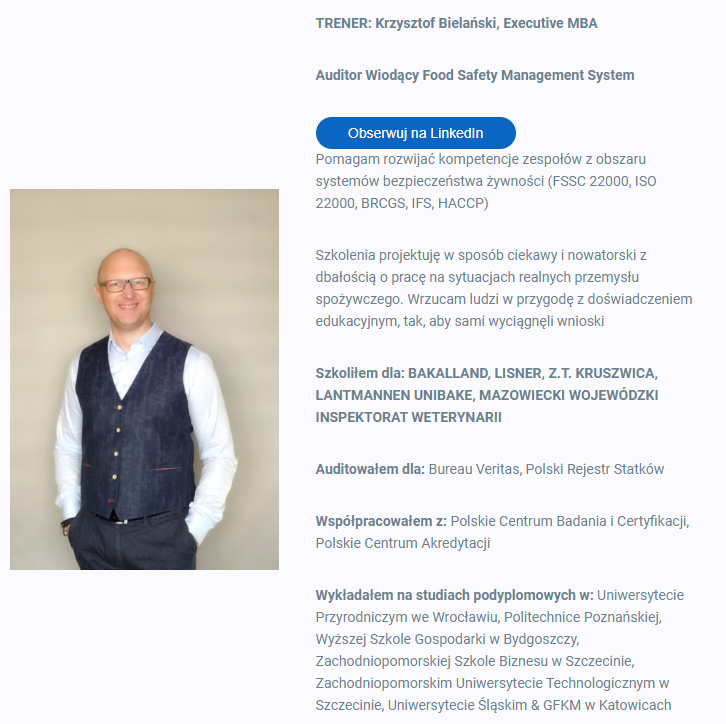 CZŁONEK ZESPOŁU DS. BEZPIECZEŃSTWA ŻYWNOŚCI (HACCP). (PAKIET e-learningów VOD)