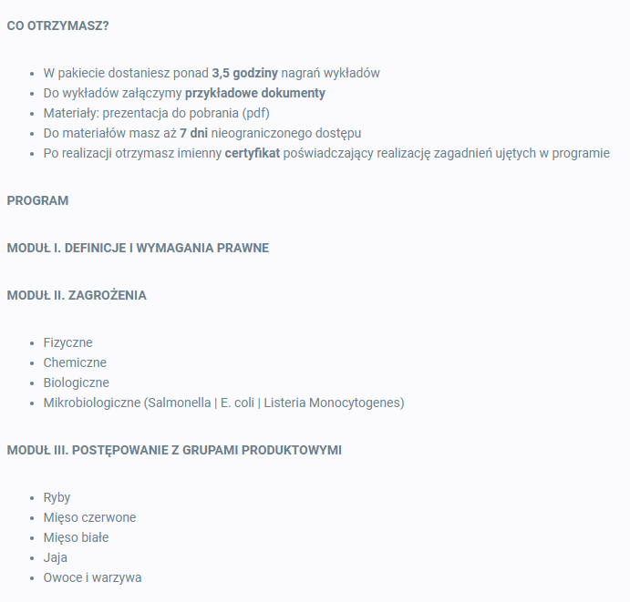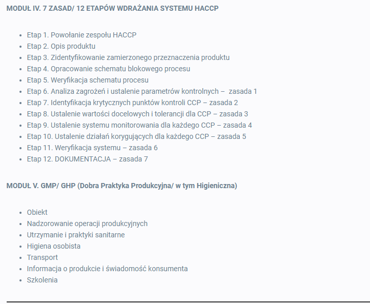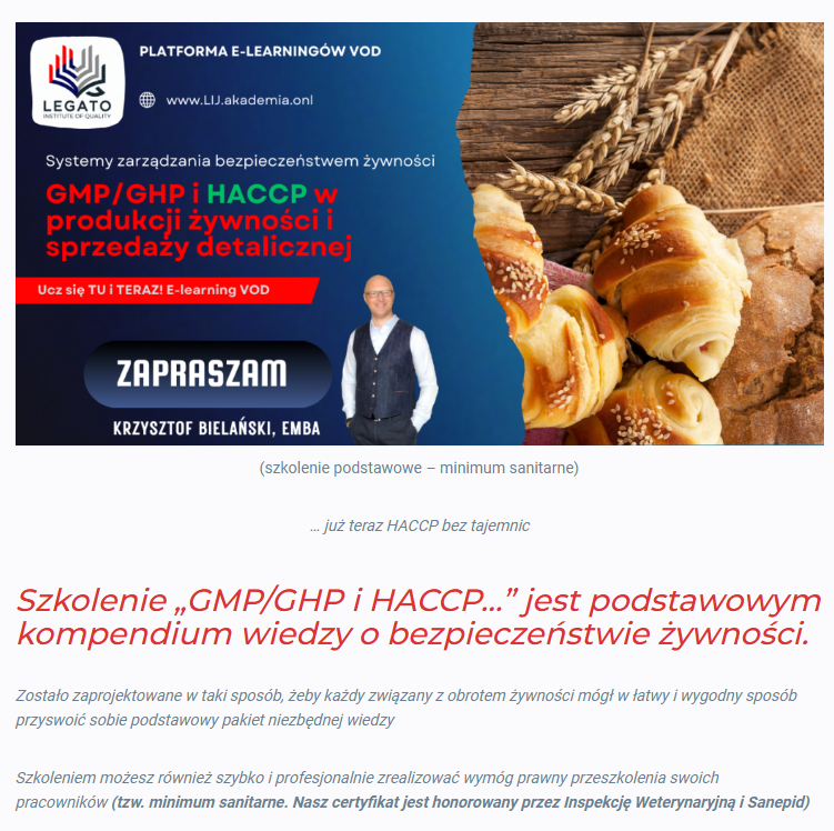 GMP/GHP i HACCP w produkcji żywności i sprzedaży detalicznej (e-learning VOD)