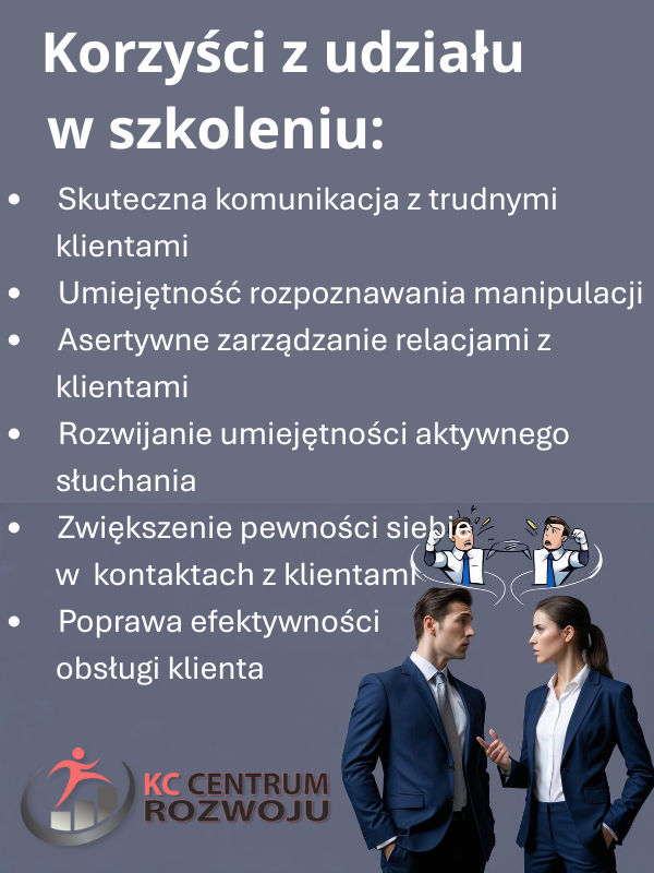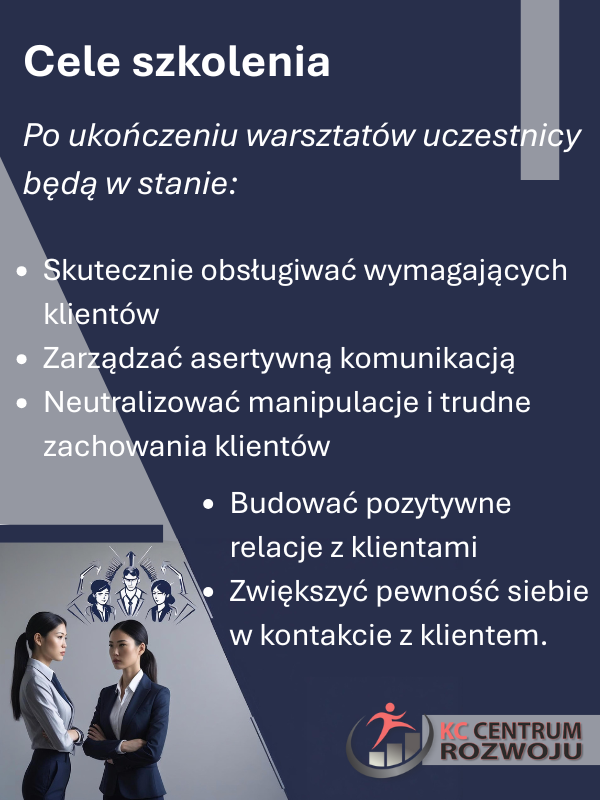 Szkolenie Jak Radzić Sobie z Wymagającym Klientem: Warsztaty Komunikacji i Asertywności to intensywny program praktycznych zajęć, zaprojektowany, aby wyposażyć uczestników w kluczowe umiejętności potrzebne do skutecznej obsługi wymagających klientów. Uczestnicy poznają sprawdzone techniki asertywności i komunikacji, nauczą się, jak radzić sobie w trudnych sytuacjach oraz jak skutecznie reagować na manipulacje i wymagania klientów.