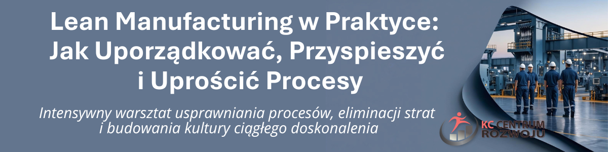 Szkolenie „ Lean Manufacturing w praktyce: Jak Uporządkować, Przyspieszyć i Uprościć Procesy” to intensywny, jednodniowy warsztat, który w przystępny i praktyczny sposób wprowadza uczestników w świat Lean Manufacturing. Uczestnicy poznają zasady eliminowania strat, porządkowania stanowisk pracy oraz mapowania procesów, a także przećwiczą kluczowe narzędzia Lean: 5S, VSM, SMED i analizę MUDA. To szkolenie to praktyczny i dynamiczny warsztat, który pomoże Twojemu zespołowi spojrzeć na codzienną pracę przez pryzmat efektywności, wartości i marnotrawstwa.