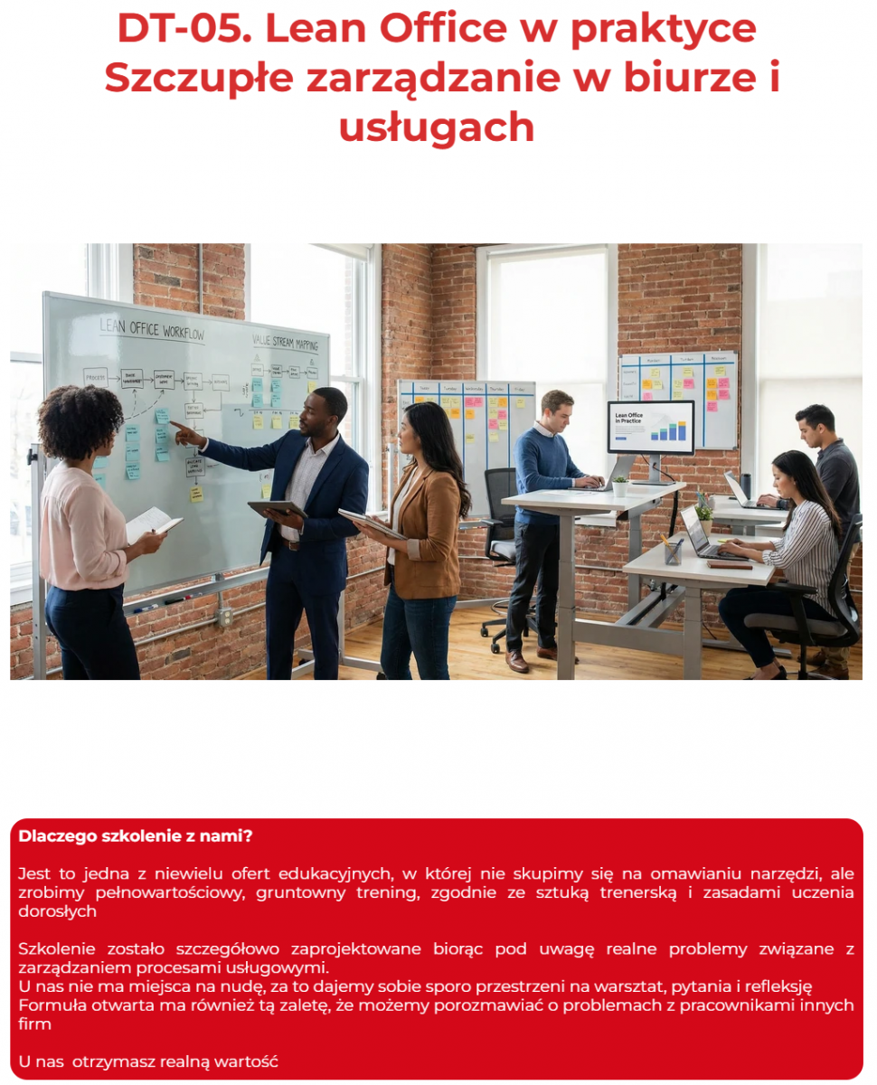 5% rabatu Lean Service – usprawnianie procesów usługowych - 2-dniowe warsztaty praktyczne. Pracuj sprytniej, nie ciężej!