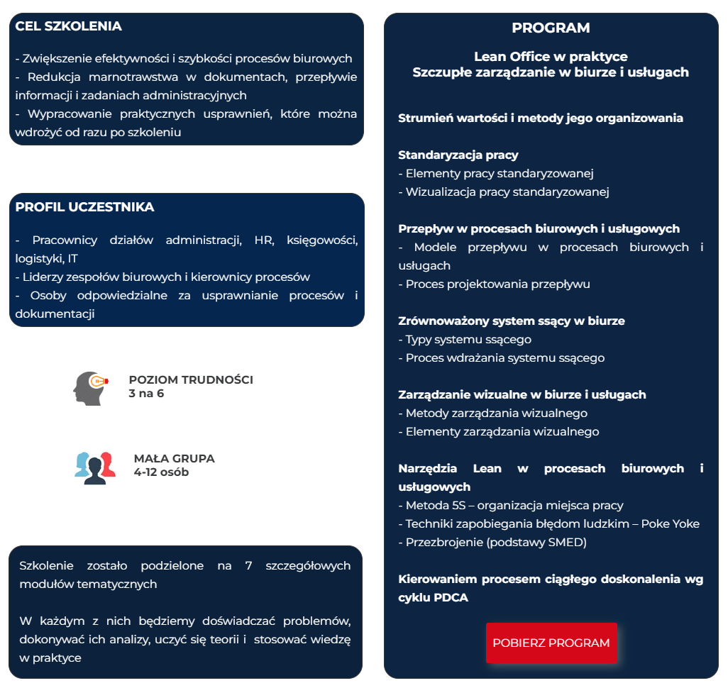 5% rabatu LEAN MANUFACTURING - optymalne zarządzanie potencjałem procesów produkcyjnych - 2-dniowe warsztaty praktyczne.