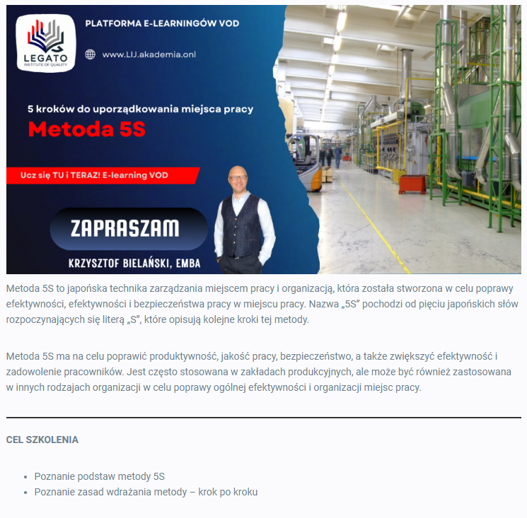 Metoda 5S. 5 kroków do uporządkowania miejsca pracy (e-learning VOD)