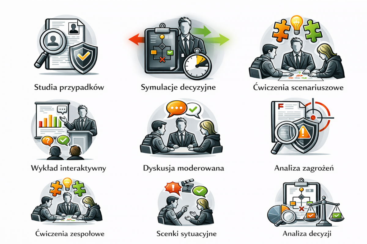 Grupa docelowa: kadra kierownicza i zarządzająca obiektami oraz procesami infrastruktury krytycznej, dyrektorzy i kierownicy odpowiedzialni za bezpieczeństwo, ciągłość działania i ochronę infrastruktury, menedżerowie operacyjni nadzorujący kluczowe procesy technologiczne i eksploatacyjne, osoby funkcyjne odpowiedzialne za zarządzanie ryzykiem, bezpieczeństwo techniczne i organizacyjne, pracownicy pionów bezpieczeństwa, ochrony, kontroli wewnętrznej i compliance, kadra nadzorcza odpowiedzialna za monitorowanie anomalii, zdarzeń nietypowych i sygnałów ostrzegawczych, osoby odpowiedzialne za współpracę z podmiotami zewnętrznymi, kontrahentami i firmami serwisowymi w obszarach krytycznych, kierownicy zmian, dyspozytorzy, operatorzy i osoby pełniące funkcje decyzyjne w trybie 24/7, przedstawiciele instytucji publicznych i spółek realizujących zadania z zakresu infrastruktury krytycznej, osoby przygotowywane do objęcia funkcji związanych z bezpieczeństwem infrastruktury i zarządzaniem kryzysowym
