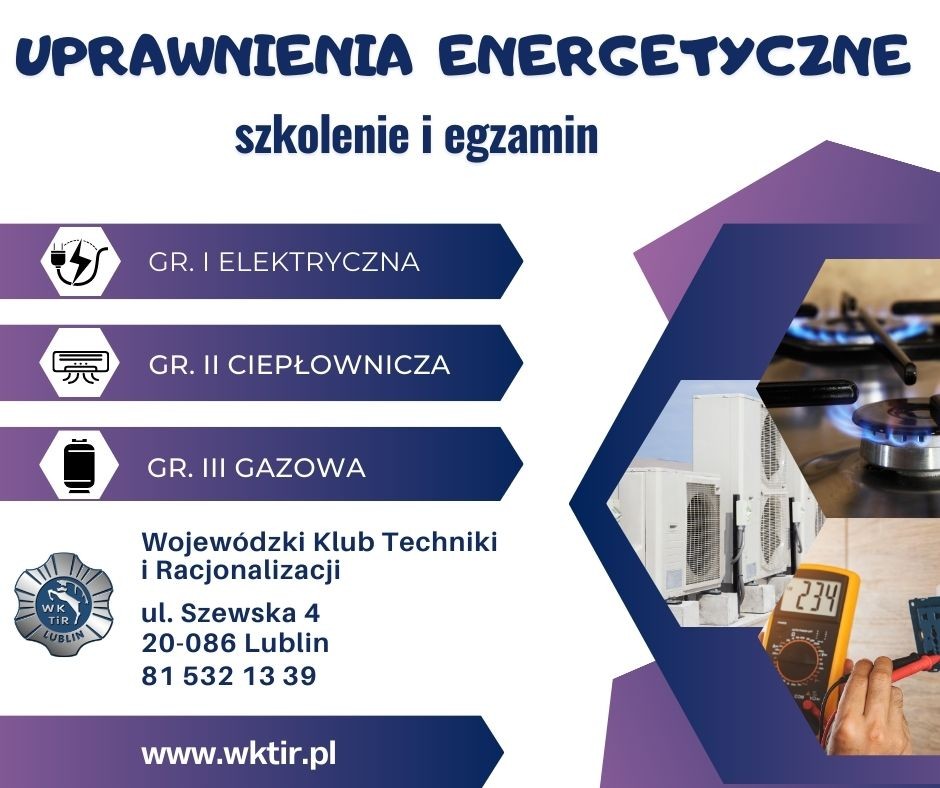 Wojewódzki Klub Techniki i Racjonalizacji zaprasza na szkolenie i egzamin Uprawnienia energetyczne: