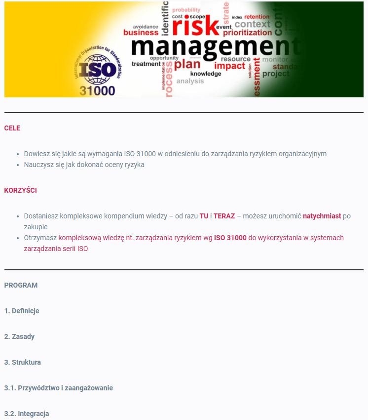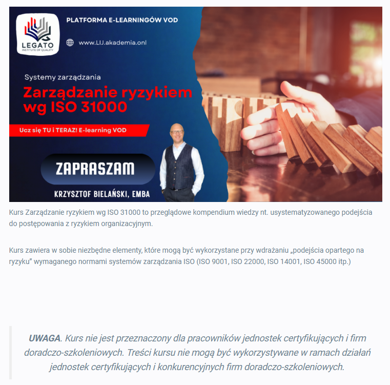 Zarządzanie ryzykiem wg ISO 31000 (e-learning VOD)