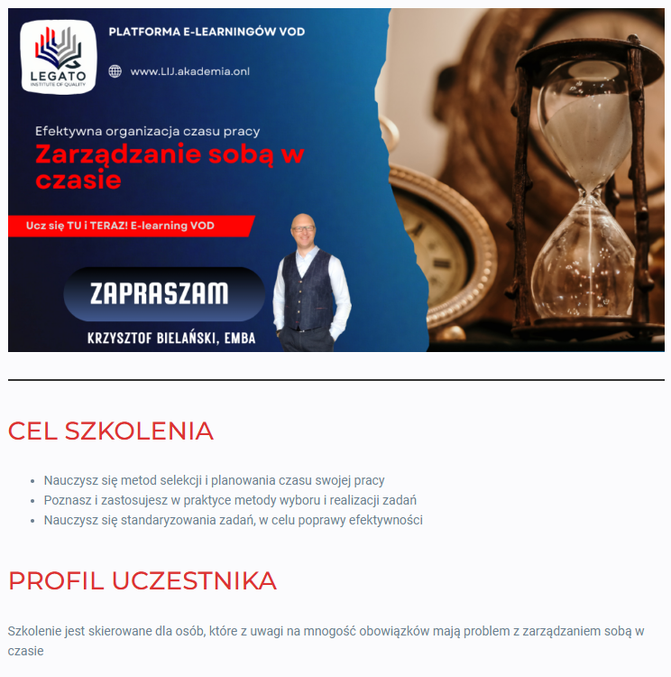 Zarządzanie sobą w czasie. Efektywna organizacja czasu pracy (e-learning VOD)